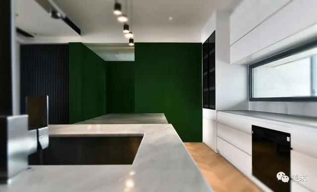 ▍鲸彩漆的墨绿色墙面,让整个空间变得鲜活灵动,搭配如同水墨画般的大理石墙面,时尚气质不言而喻。
